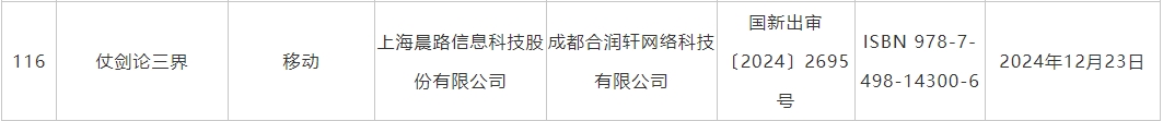 On 24 December, the State Press and Publication Administration (SPPA) officially released information on the approval of domestically produced ISBNs for the month of December 2024, with a total of 122 games receiving ISBNs, including UNI-STAR's The Swordsman of Time and Space and Battling Swords in the Three Realms.